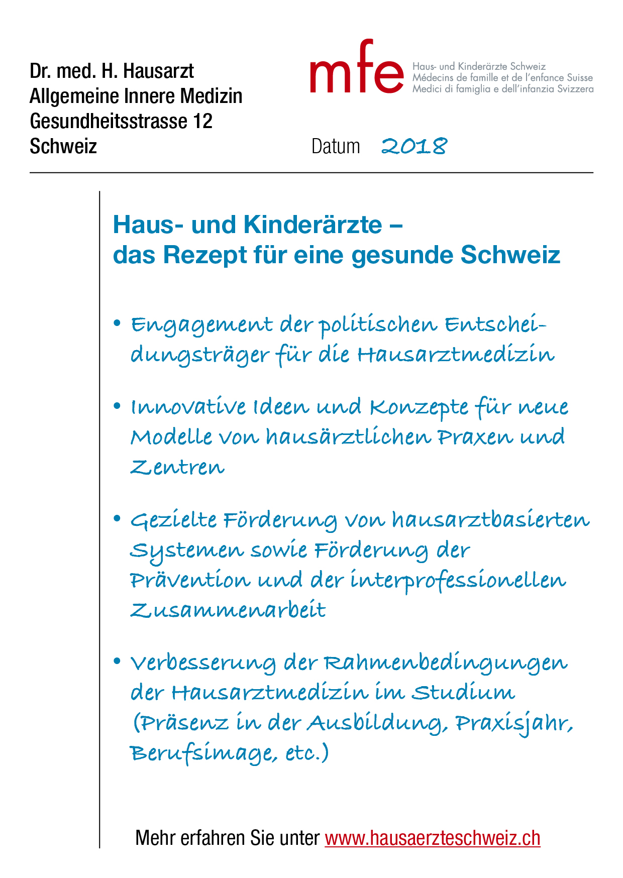Haus- und Kinderärzte - das Rezept für eine gesunde Schweiz
